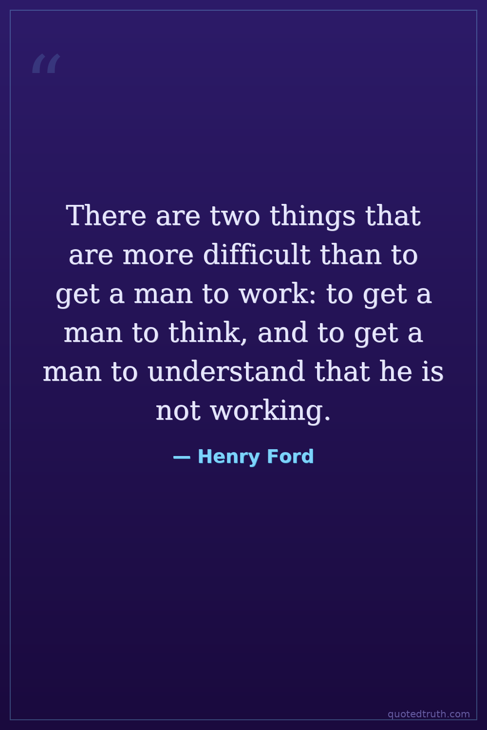 There are two things that are more difficult than to get a man to work: to get a man to think, and to get a man to understand that he is not working.