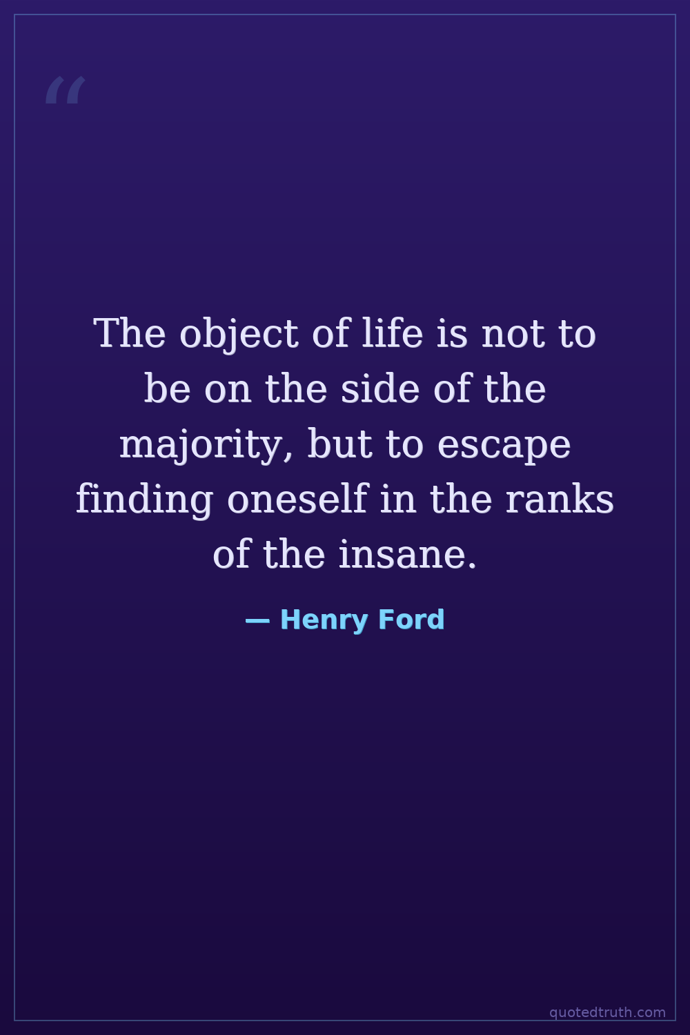 The object of life is not to be on the side of the majority, but to escape finding oneself in the ranks of the insane.