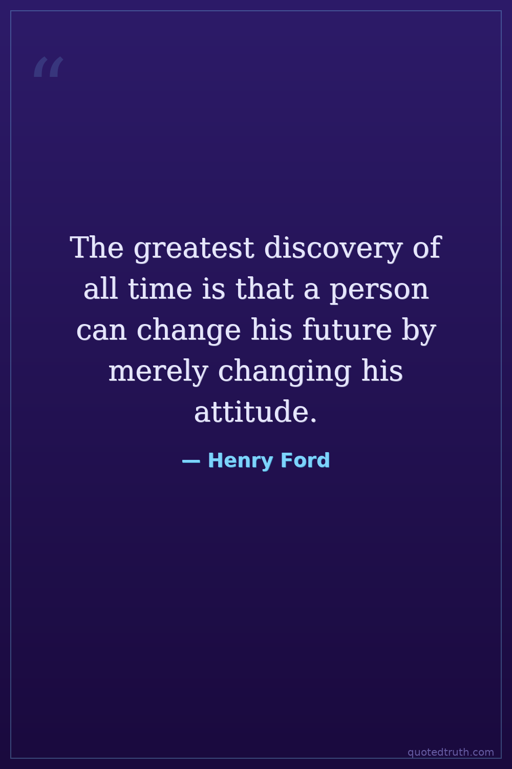 The greatest discovery of all time is that a person can change his future by merely changing his attitude.