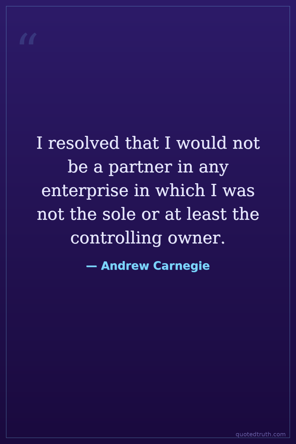 I resolved that I would not be a partner in any enterprise in which I was not the sole or at least the controlling owner.
