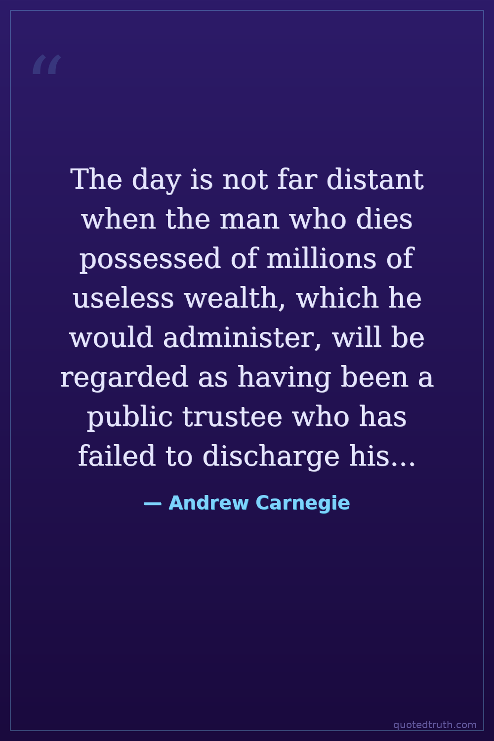 The day is not far distant when the man who dies possessed of millions of useless wealth, which he would administer, will be regarded as having been a public trustee who has failed to discharge his trust.