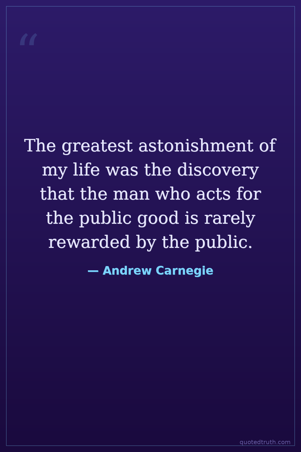 The greatest astonishment of my life was the discovery that the man who acts for the public good is rarely rewarded by the public.