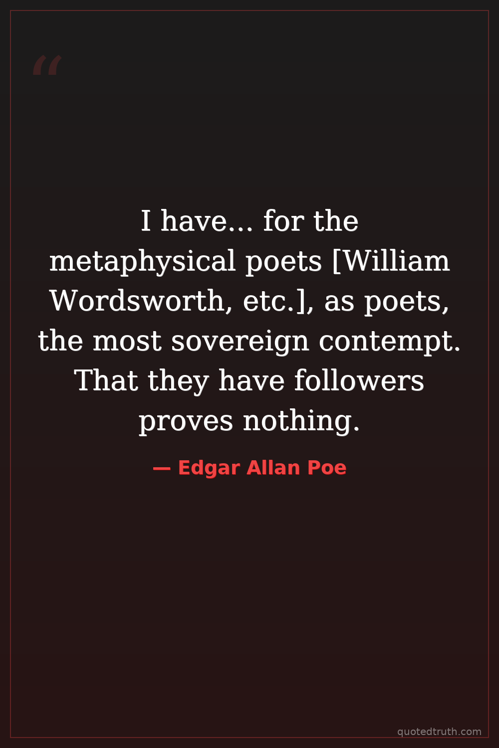 I have... for the metaphysical poets [William Wordsworth, etc.], as poets, the most sovereign contempt. That they have followers proves nothing.