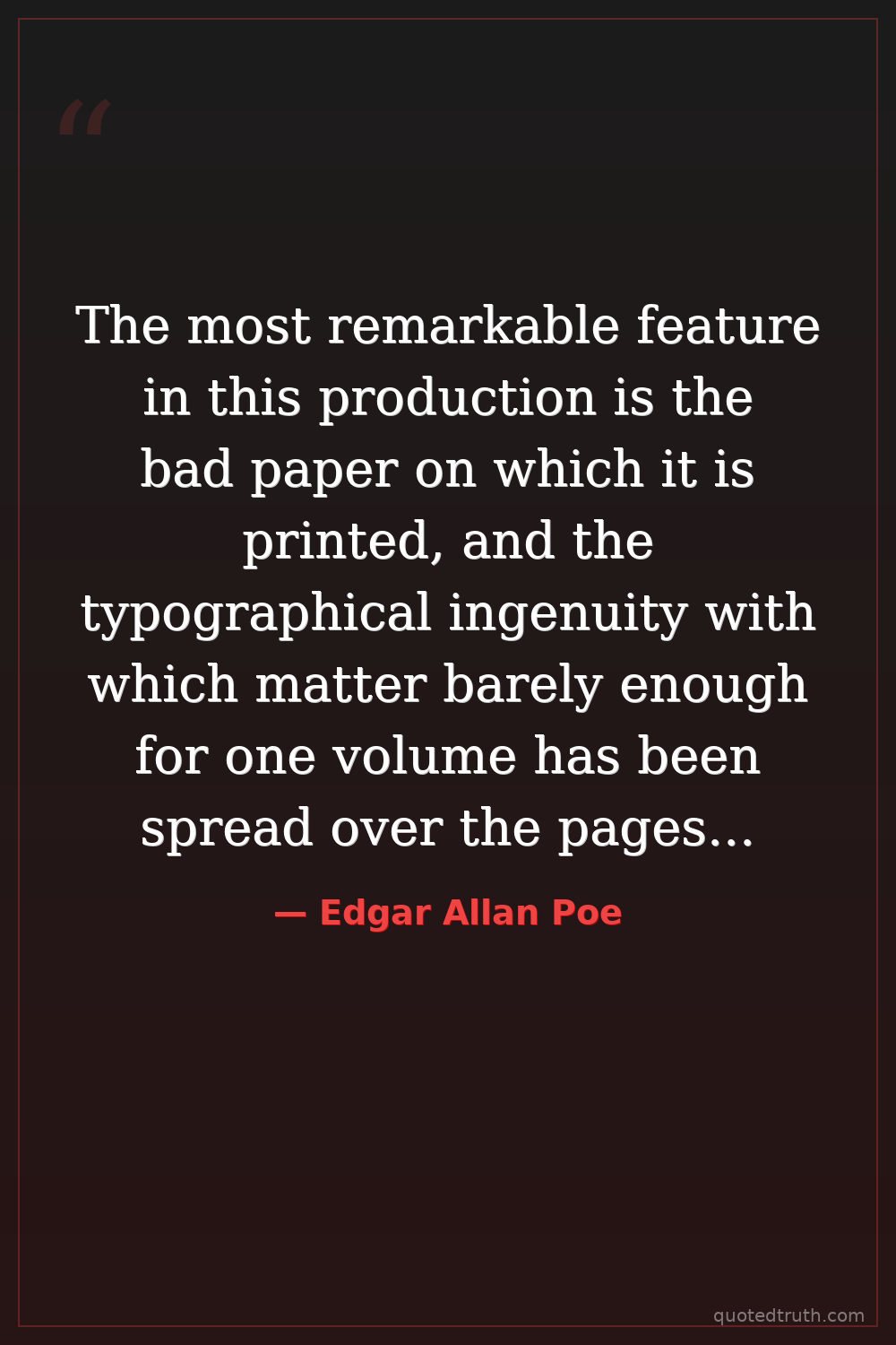 Humorous"Beauty of whatever kind, in its supreme development, invariably excites the sensitive soul to tears."