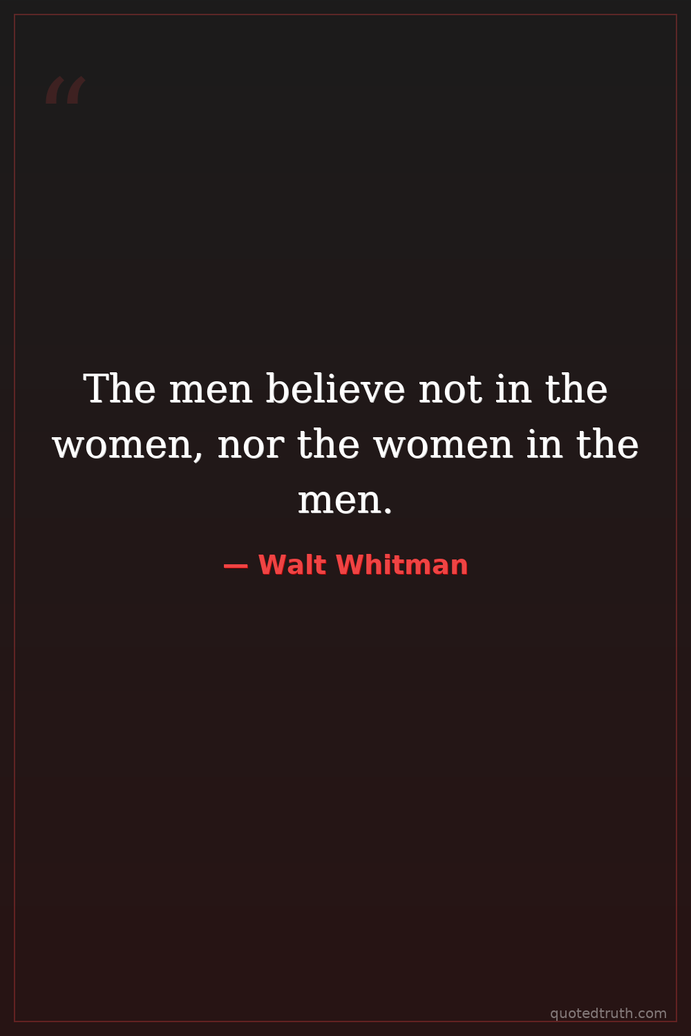 The men believe not in the women, nor the women in the men.