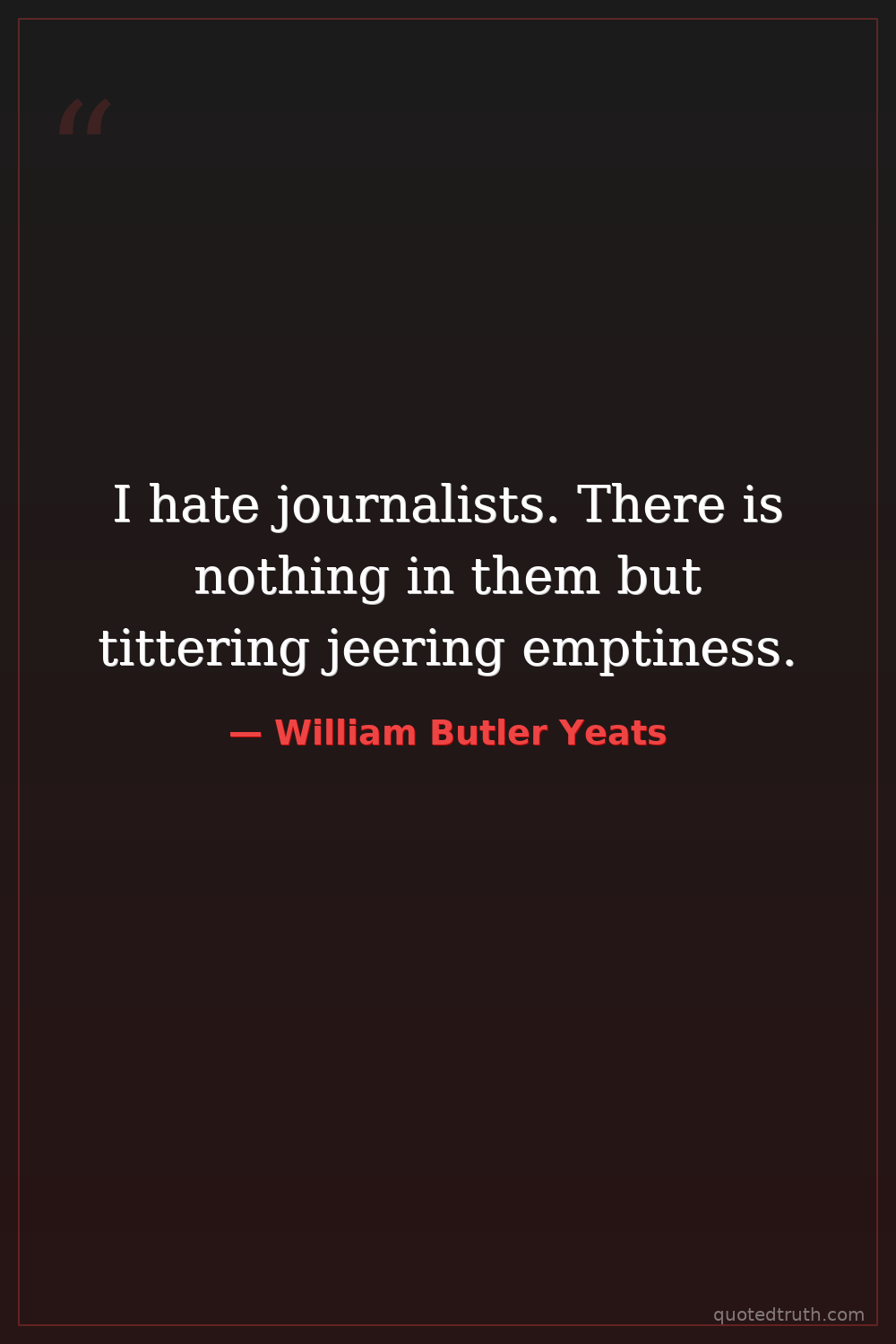 I hate journalists. There is nothing in them but tittering jeering emptiness.