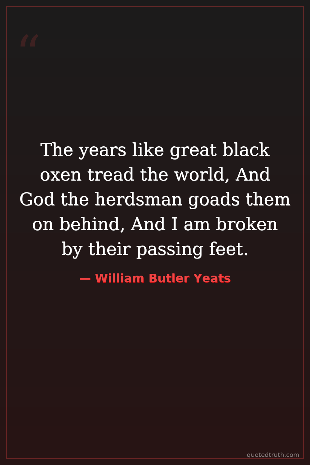 The years like great black oxen tread the world, And God the herdsman goads them on behind, And I am broken by their passing feet.