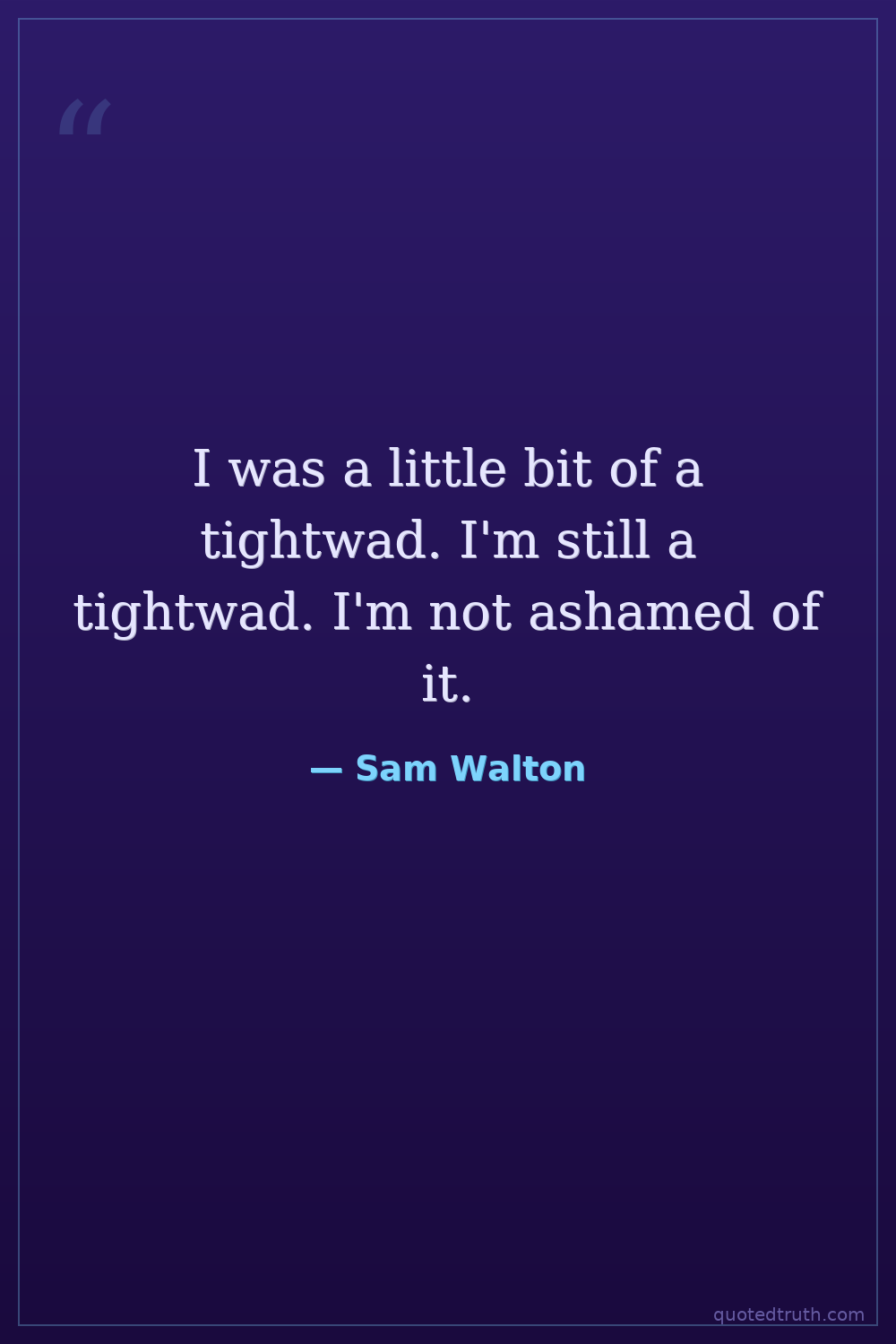I was a little bit of a tightwad. I'm still a tightwad. I'm not ashamed of it.