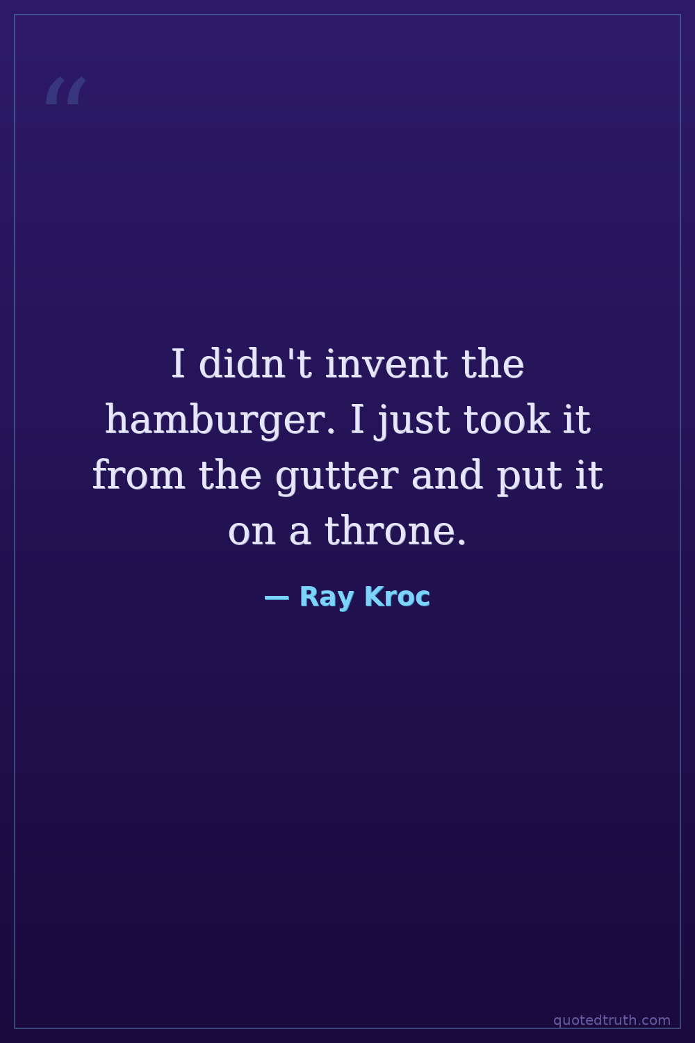 I didn't invent the hamburger. I just took it from the gutter and put it on a throne.