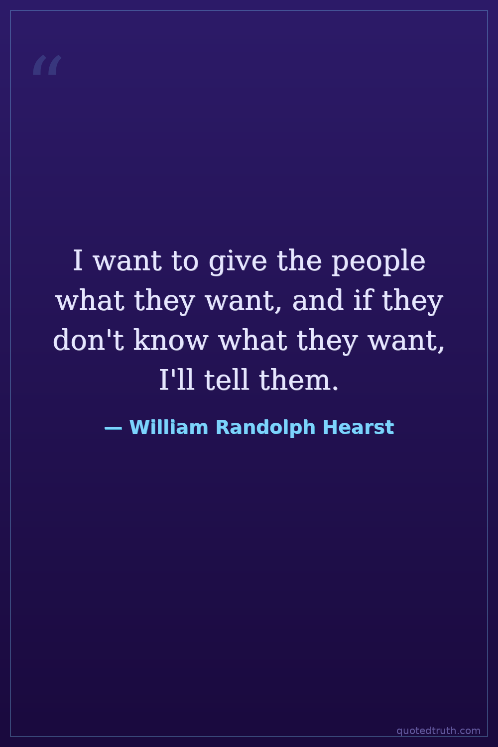 I want to give the people what they want, and if they don't know what they want, I'll tell them.