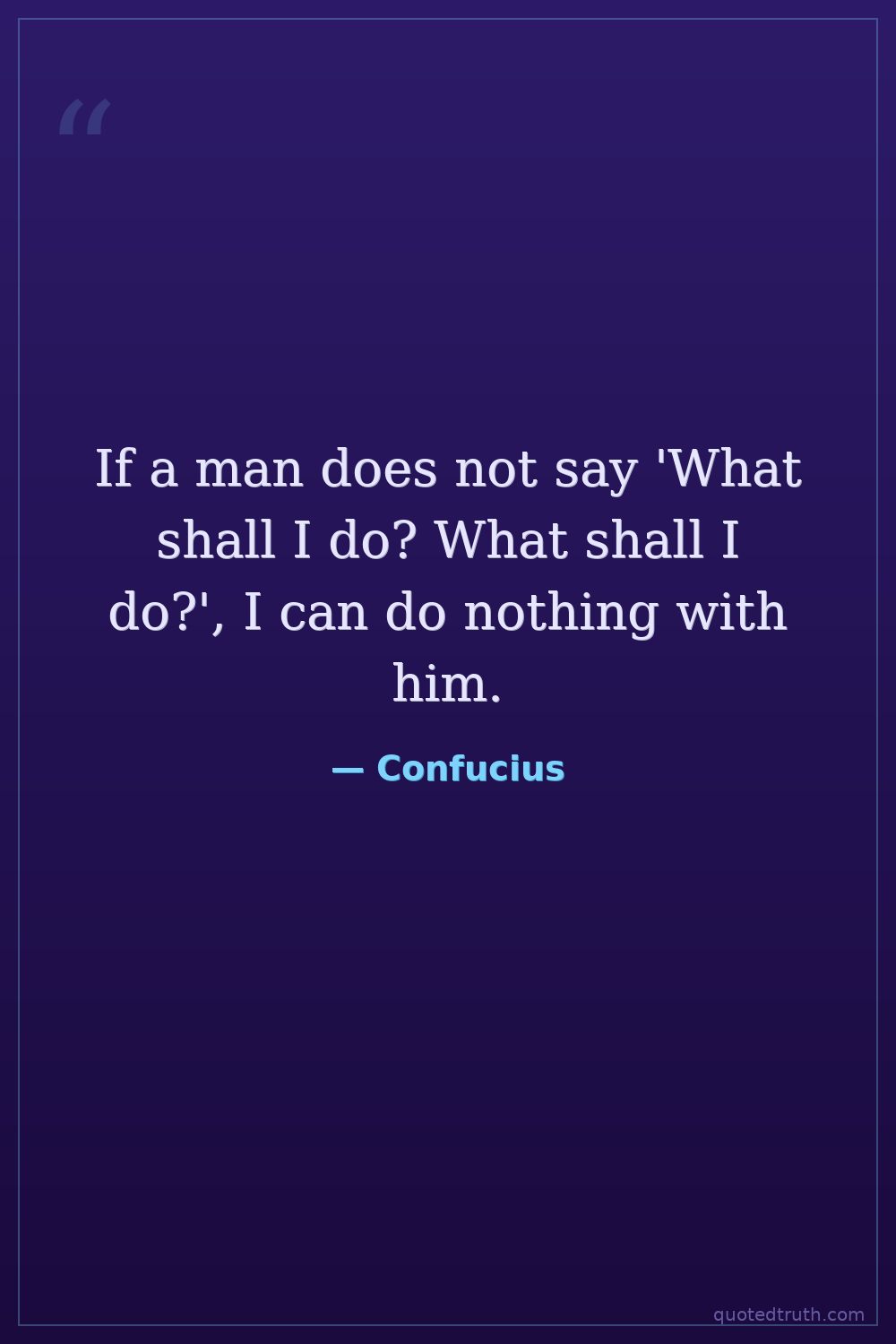 If a man does not say 'What shall I do? What shall I do?', I can do nothing with him.