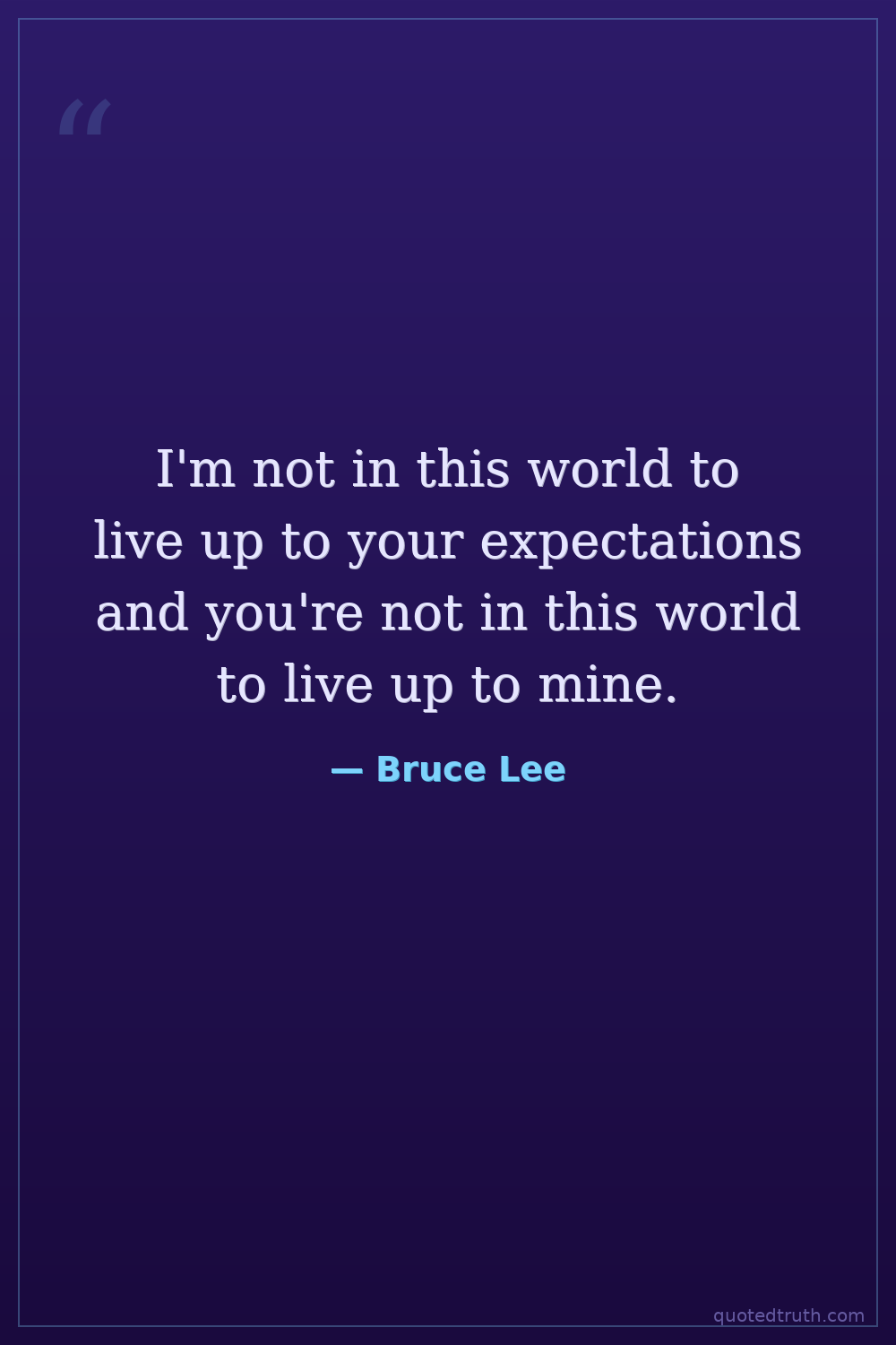 I'm not in this world to live up to your expectations and you're not in this world to live up to mine.