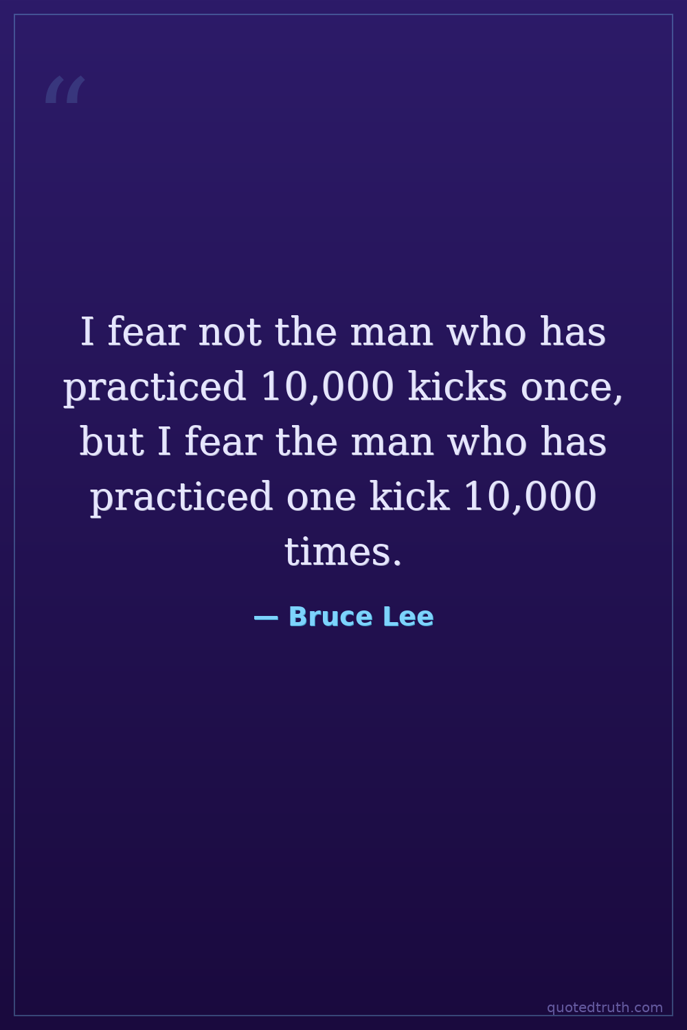 I fear not the man who has practiced 10,000 kicks once, but I fear the man who has practiced one kick 10,000 times.