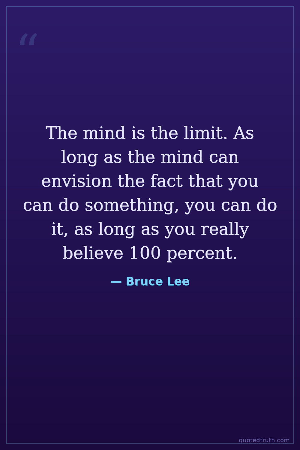The mind is the limit. As long as the mind can envision the fact that you can do something, you can do it, as long as you really believe 100 percent.