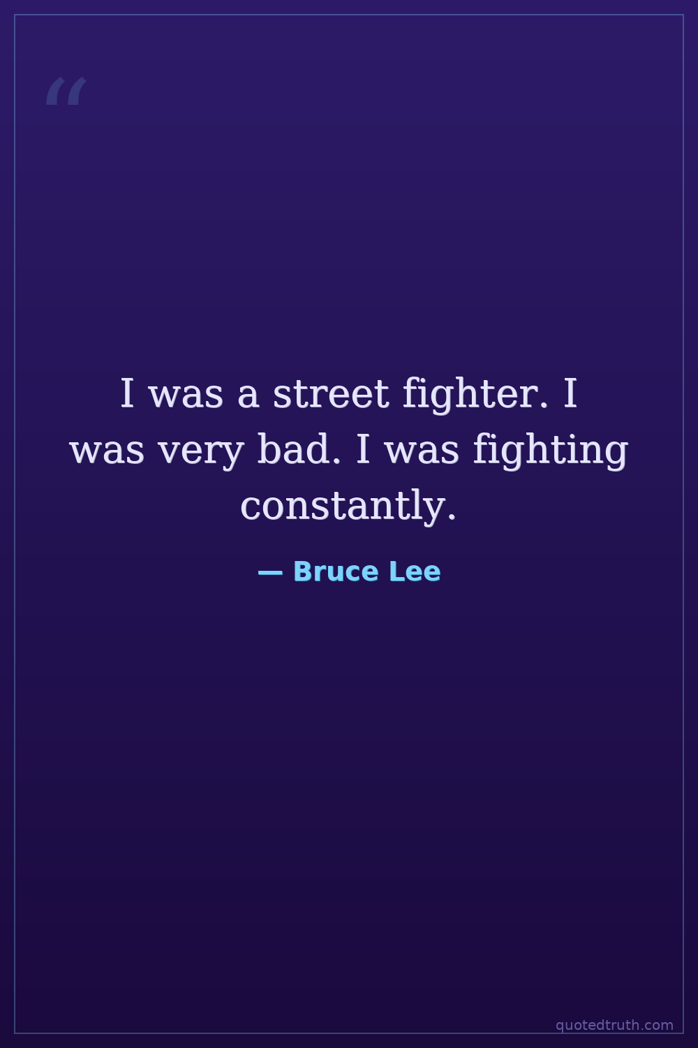 I was a street fighter. I was very bad. I was fighting constantly.