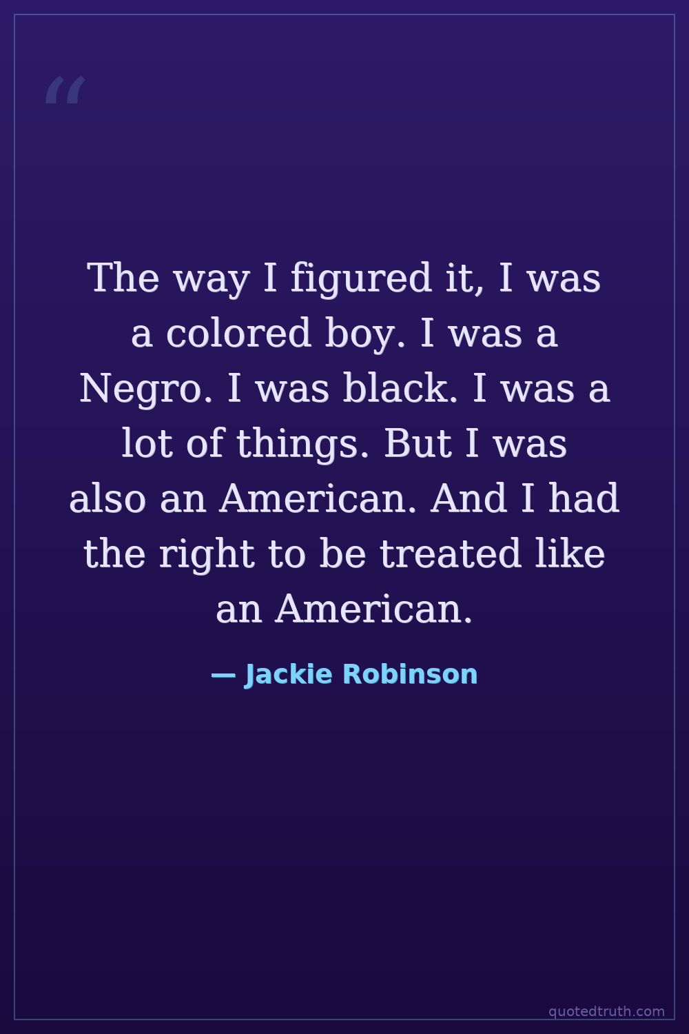 The way I figured it, I was a colored boy. I was a Negro. I was black. I was a lot of things. But I was also an American. And I had the right to be treated like an American.