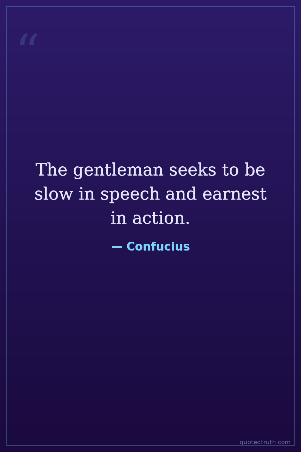 The gentleman seeks to be slow in speech and earnest in action.