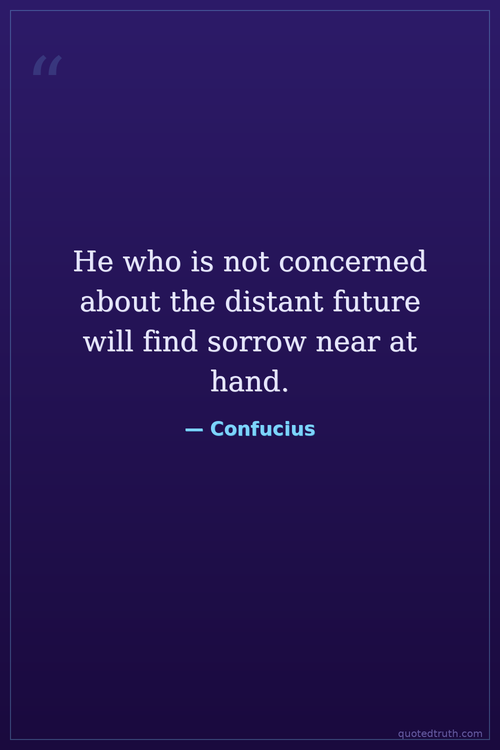 He who is not concerned about the distant future will find sorrow near at hand.