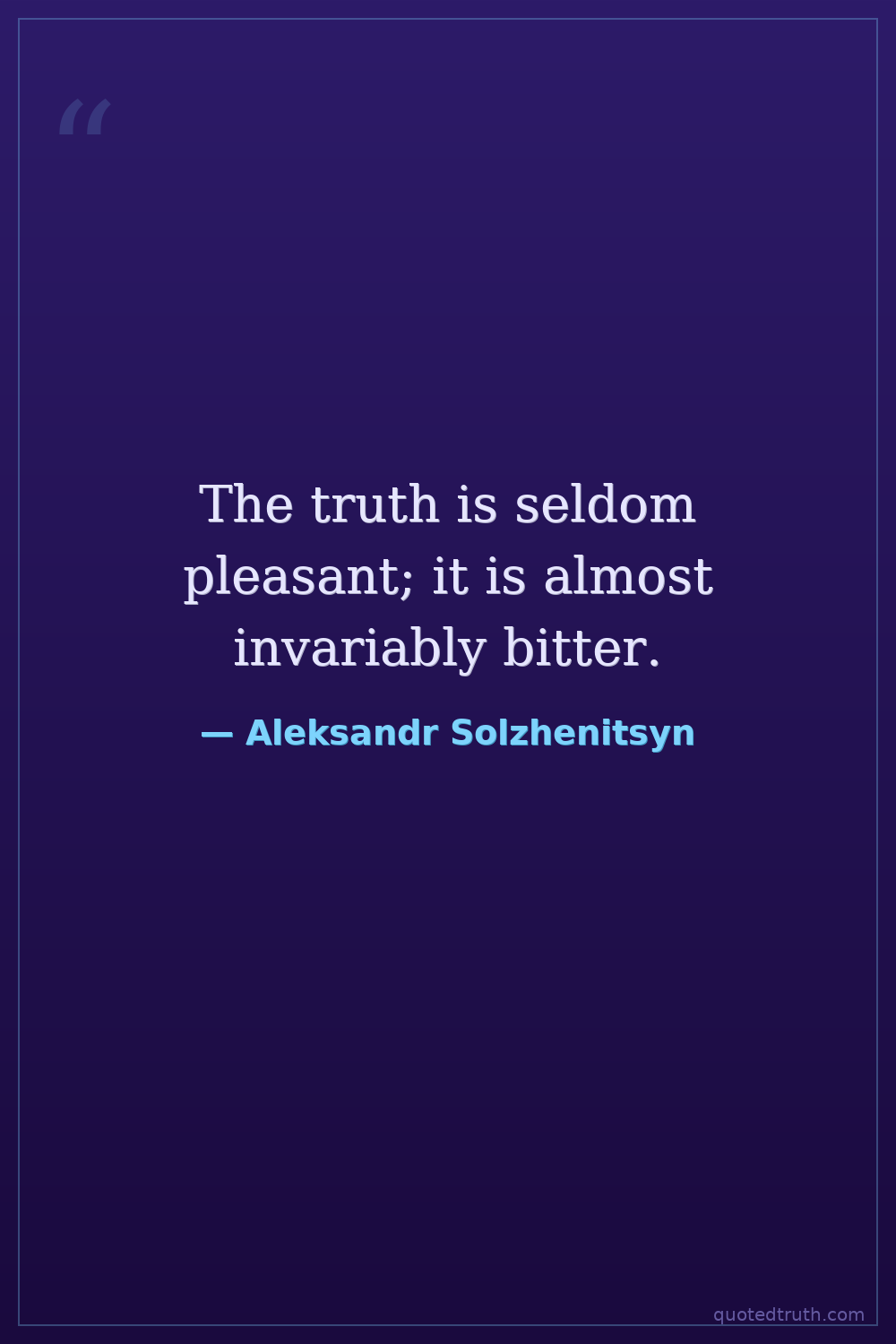 The truth is seldom pleasant; it is almost invariably bitter.
