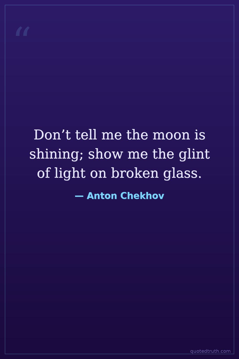 Don’t tell me the moon is shining; show me the glint of light on broken glass.