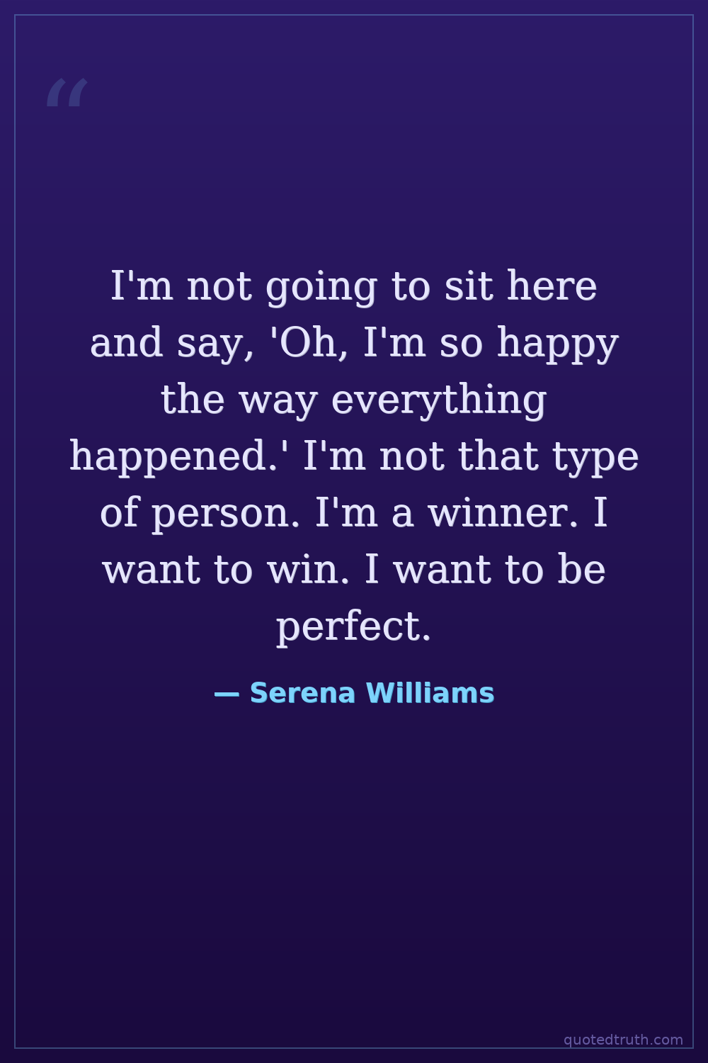 I'm not going to sit here and say, 'Oh, I'm so happy the way everything happened.' I'm not that type of person. I'm a winner. I want to win. I want to be perfect.