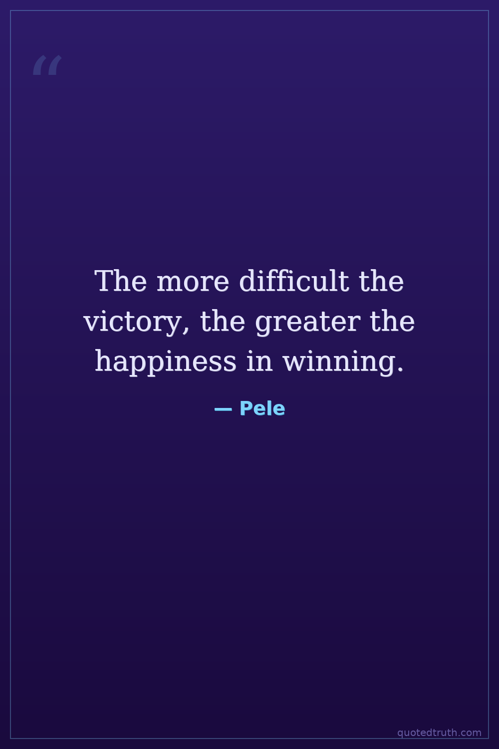 The more difficult the victory, the greater the happiness in winning.