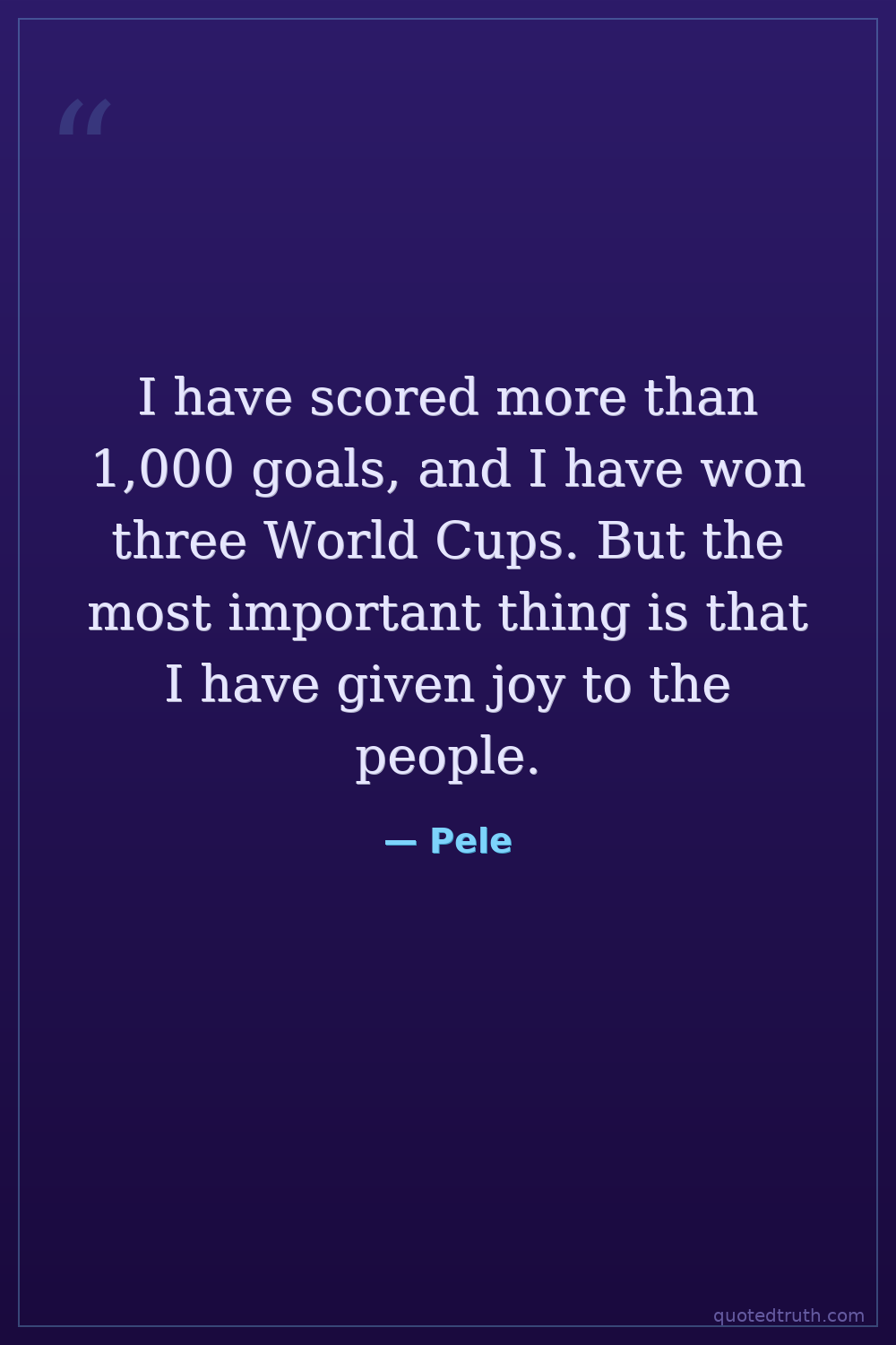 I have scored more than 1,000 goals, and I have won three World Cups. But the most important thing is that I have given joy to the people.