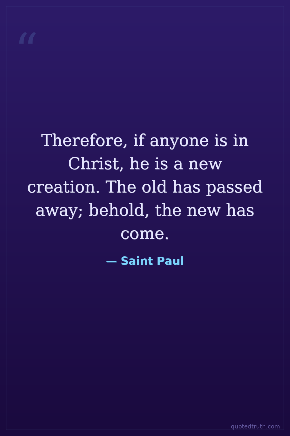 Therefore, if anyone is in Christ, he is a new creation. The old has passed away; behold, the new has come.