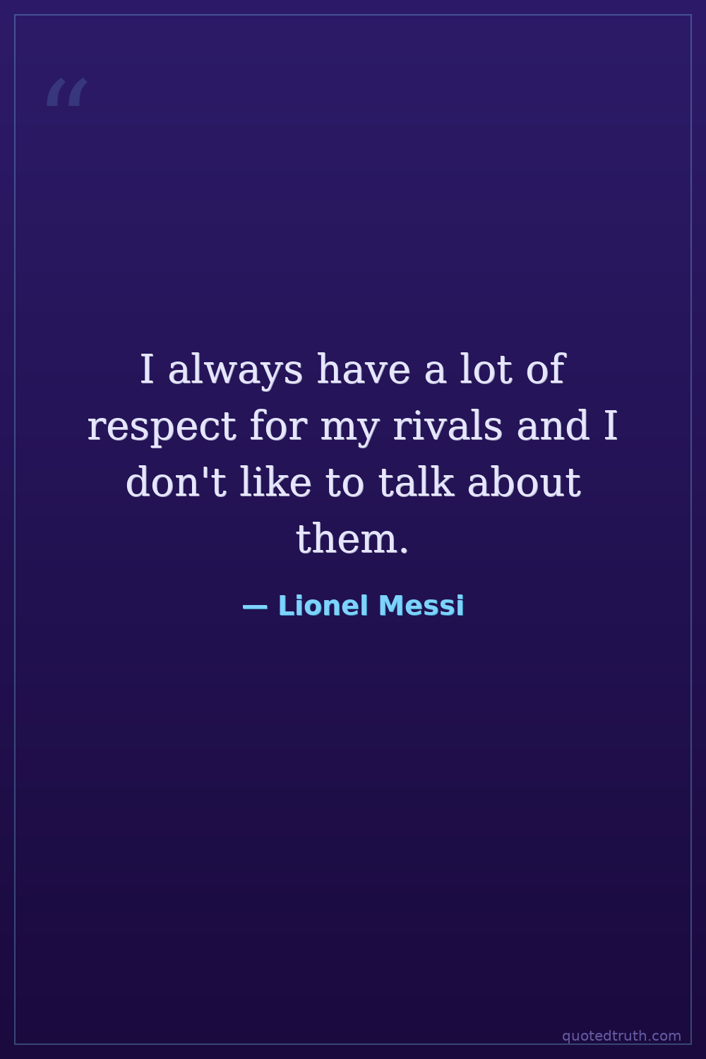 I always have a lot of respect for my rivals and I don't like to talk about them.