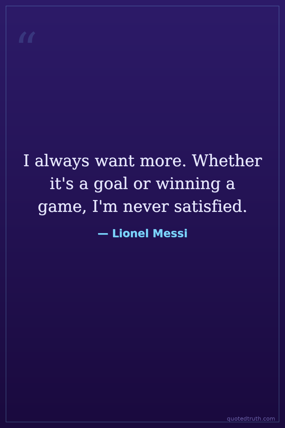 I always want more. Whether it's a goal or winning a game, I'm never satisfied.