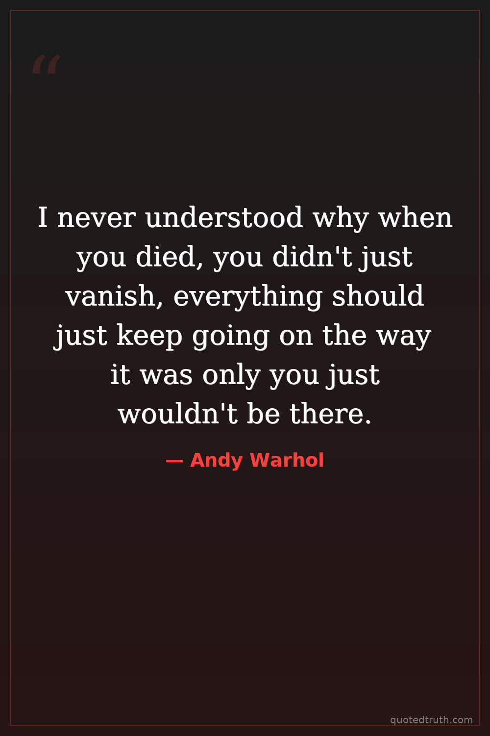 I never understood why when you died, you didn't just vanish, everything should just keep going on the way it was only you just wouldn't be there.