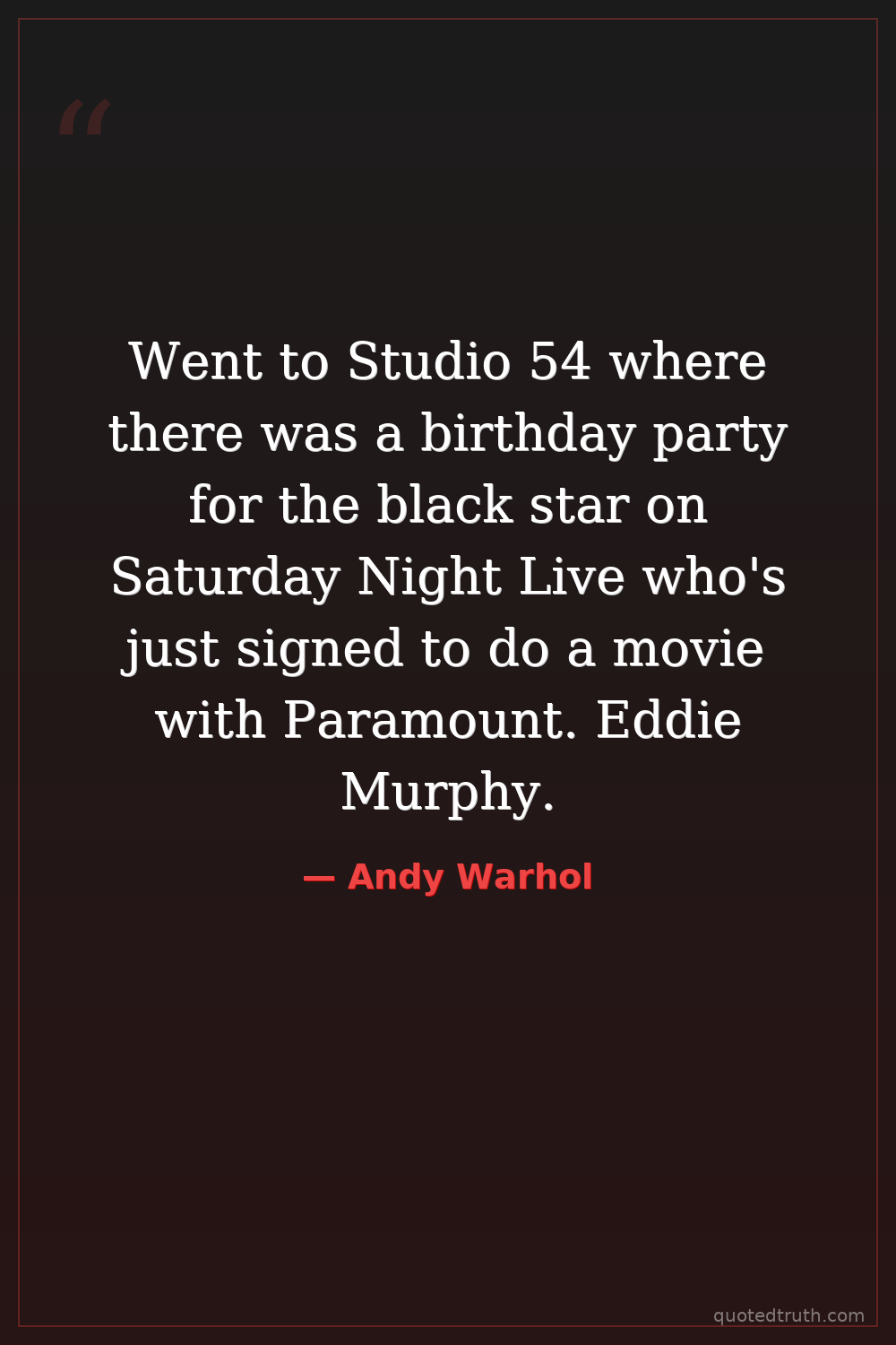 Went to Studio 54 where there was a birthday party for the black star on Saturday Night Live who's just signed to do a movie with Paramount. Eddie Murphy.