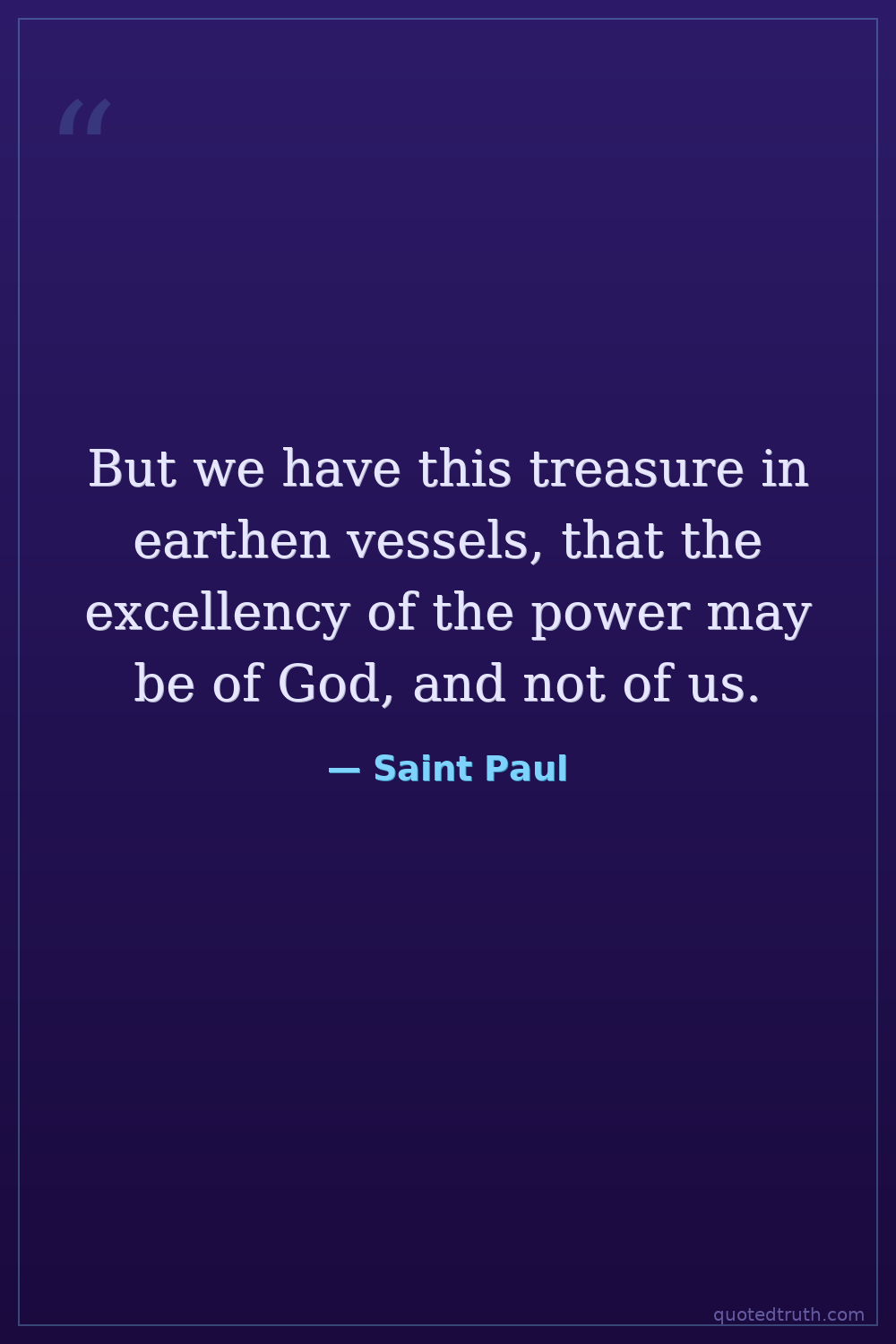 But we have this treasure in earthen vessels, that the excellency of the power may be of God, and not of us.