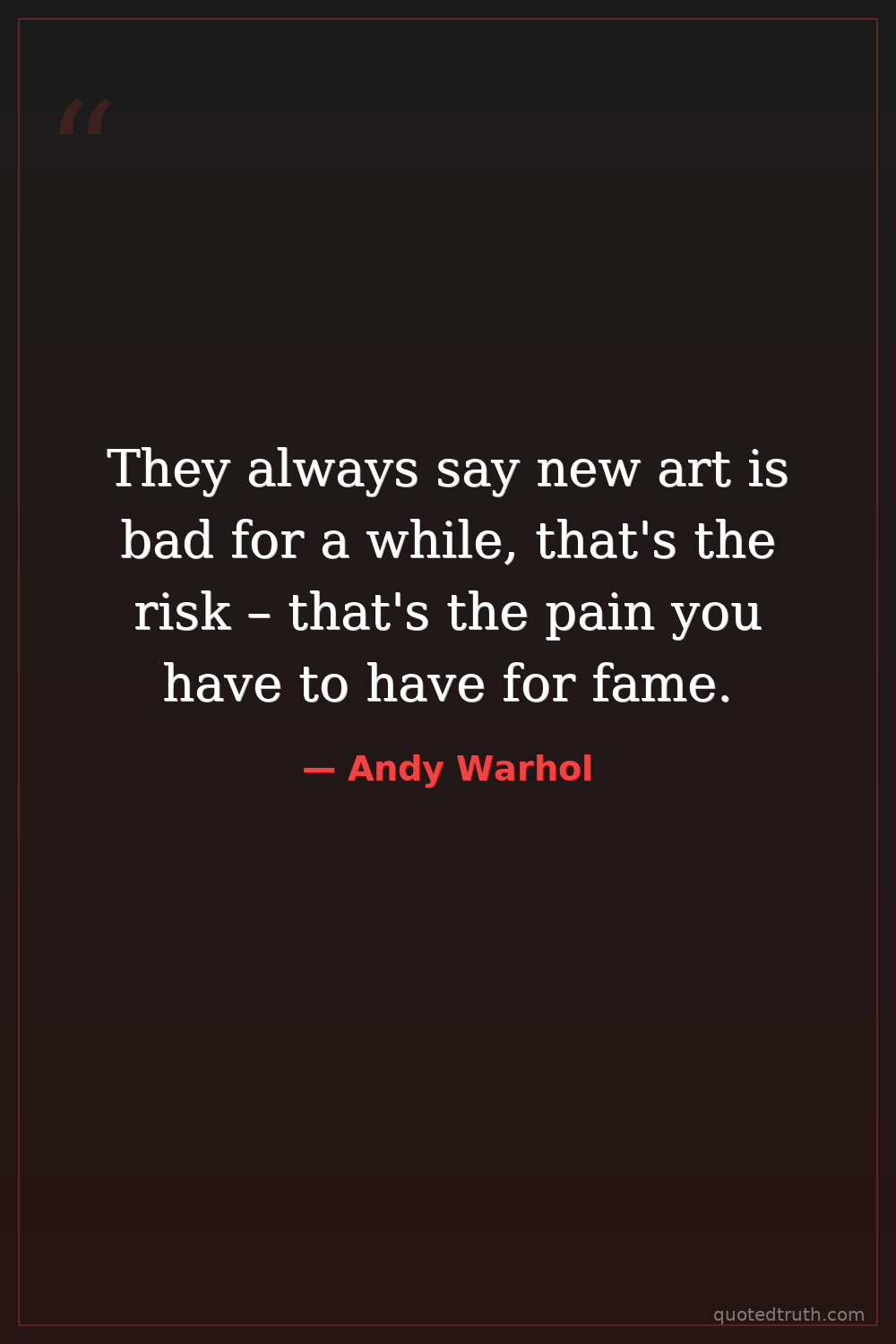 They always say new art is bad for a while, that's the risk – that's the pain you have to have for fame.