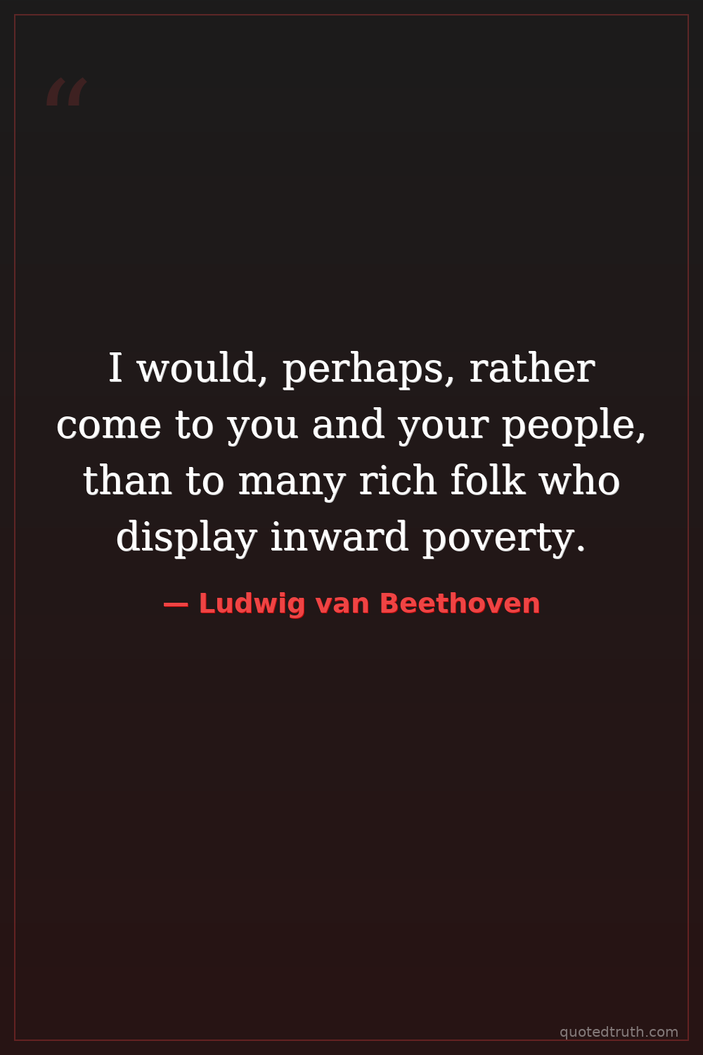 I would, perhaps, rather come to you and your people, than to many rich folk who display inward poverty.