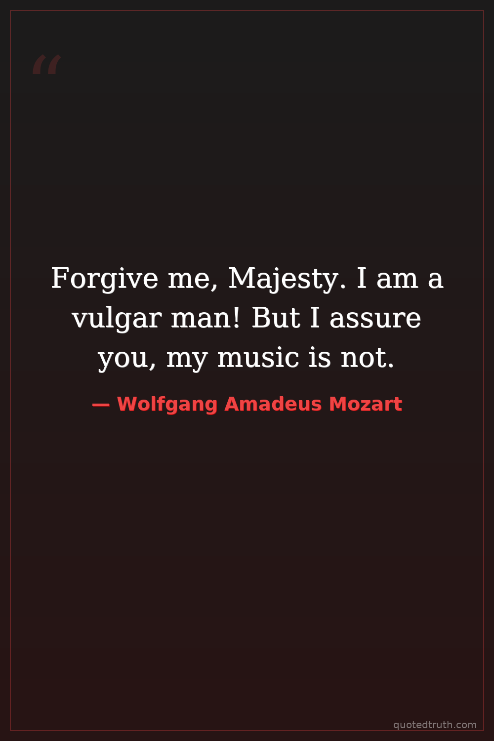 Forgive me, Majesty. I am a vulgar man! But I assure you, my music is not.