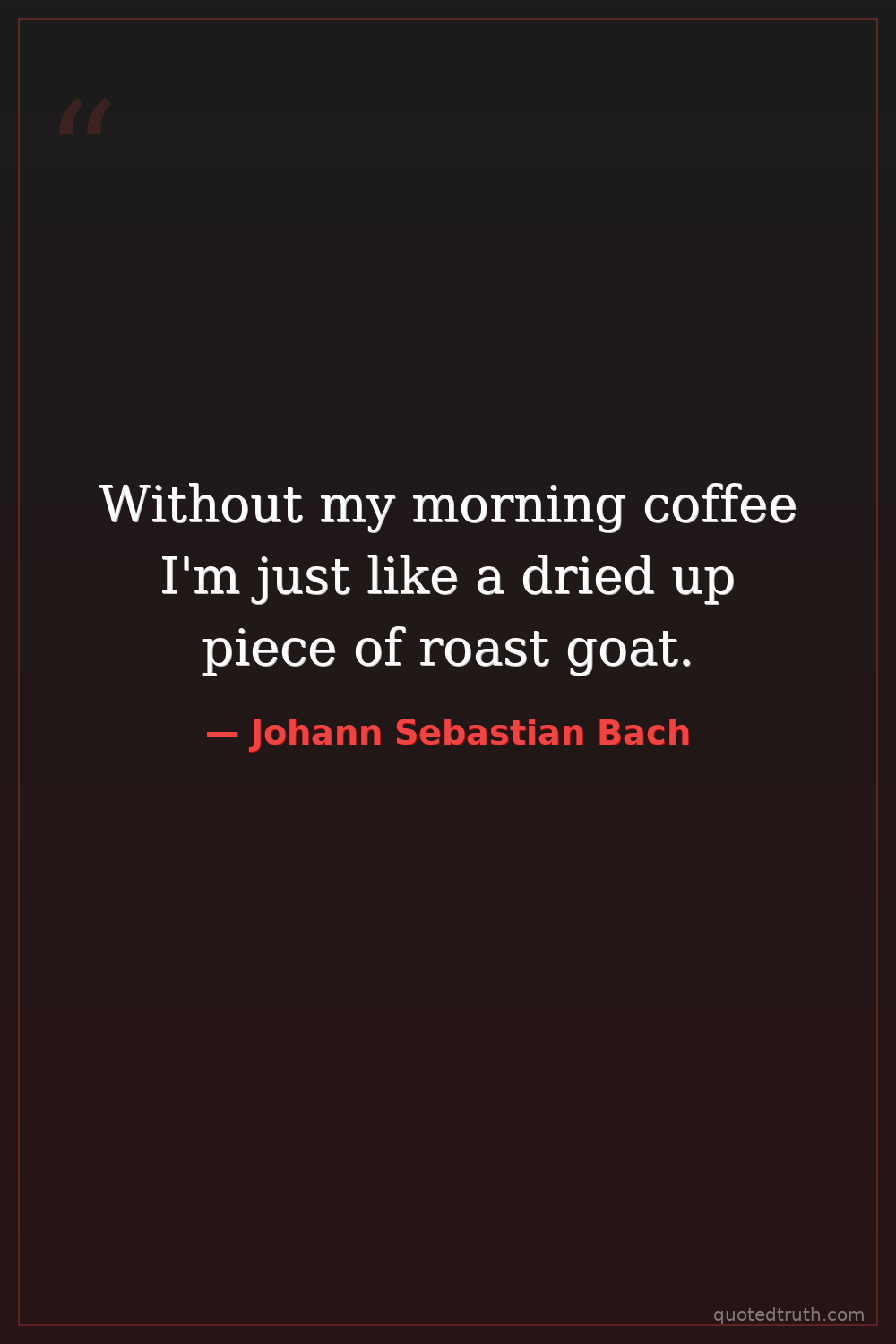 Without my morning coffee I'm just like a dried up piece of roast goat.