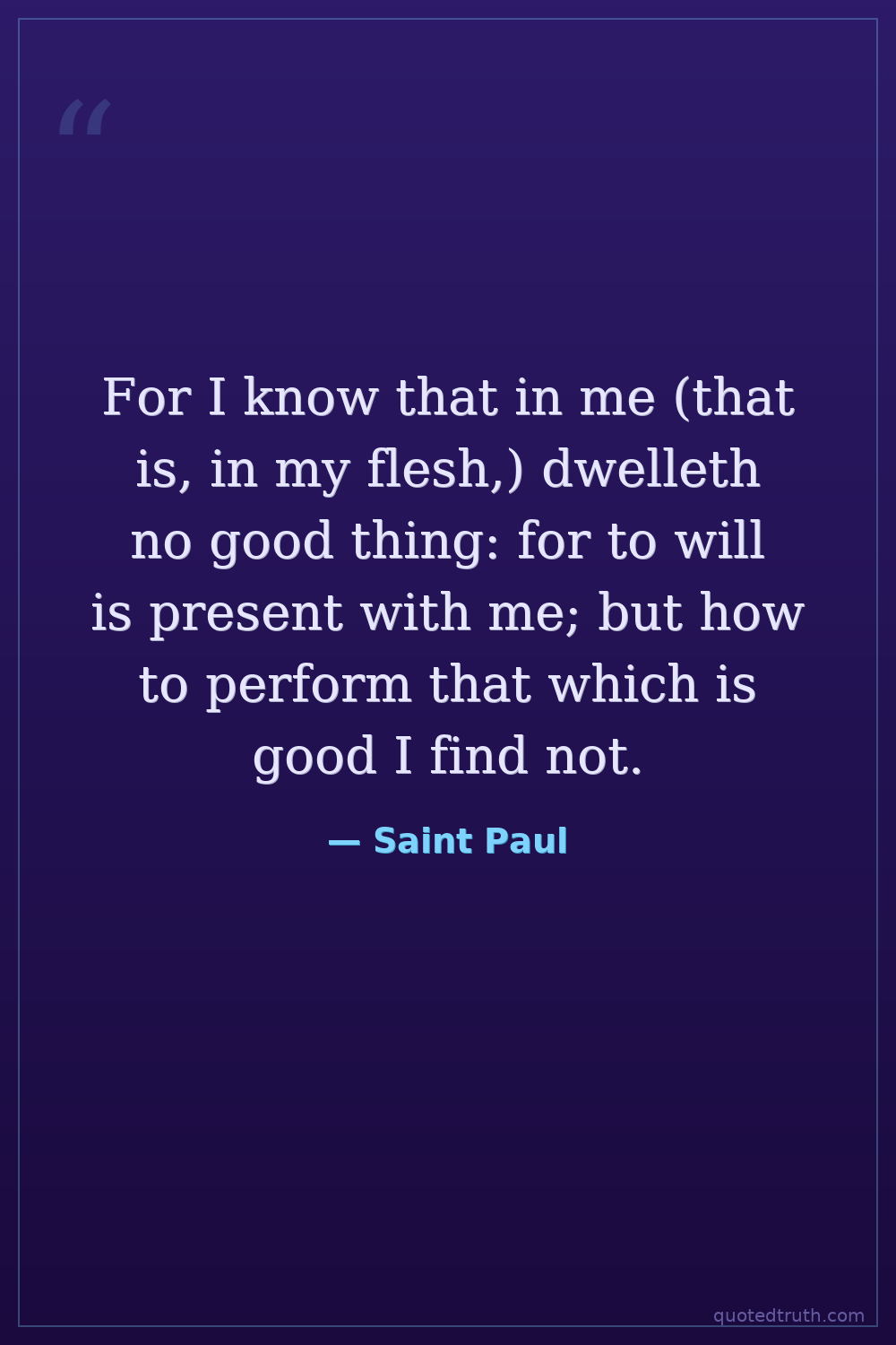 For I know that in me (that is, in my flesh,) dwelleth no good thing: for to will is present with me; but how to perform that which is good I find not.