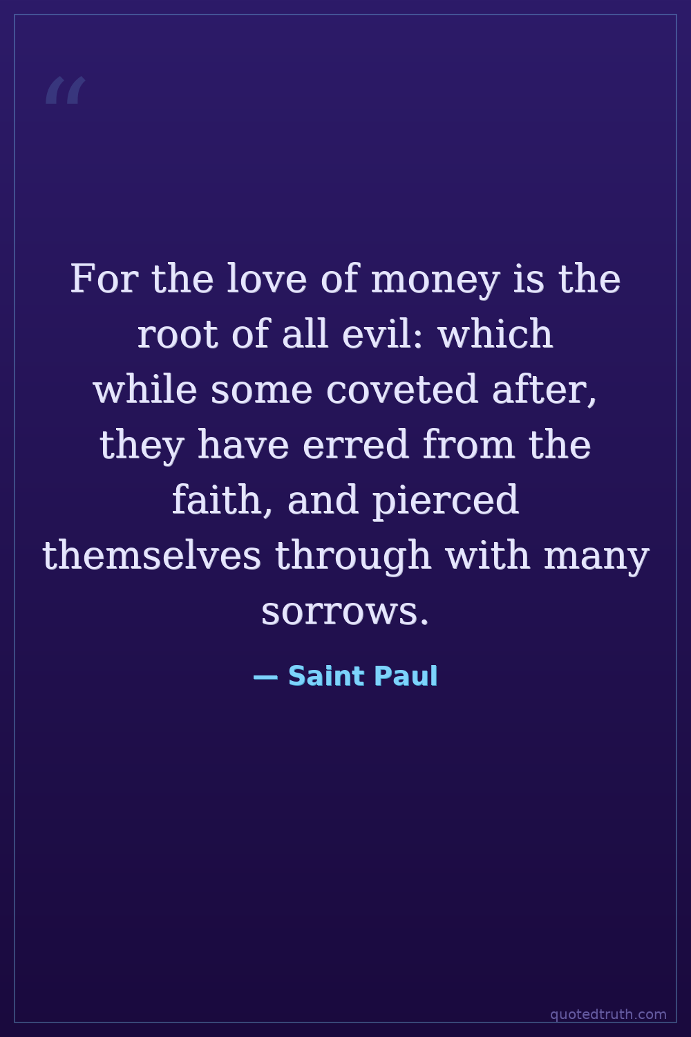 For the love of money is the root of all evil: which while some coveted after, they have erred from the faith, and pierced themselves through with many sorrows.