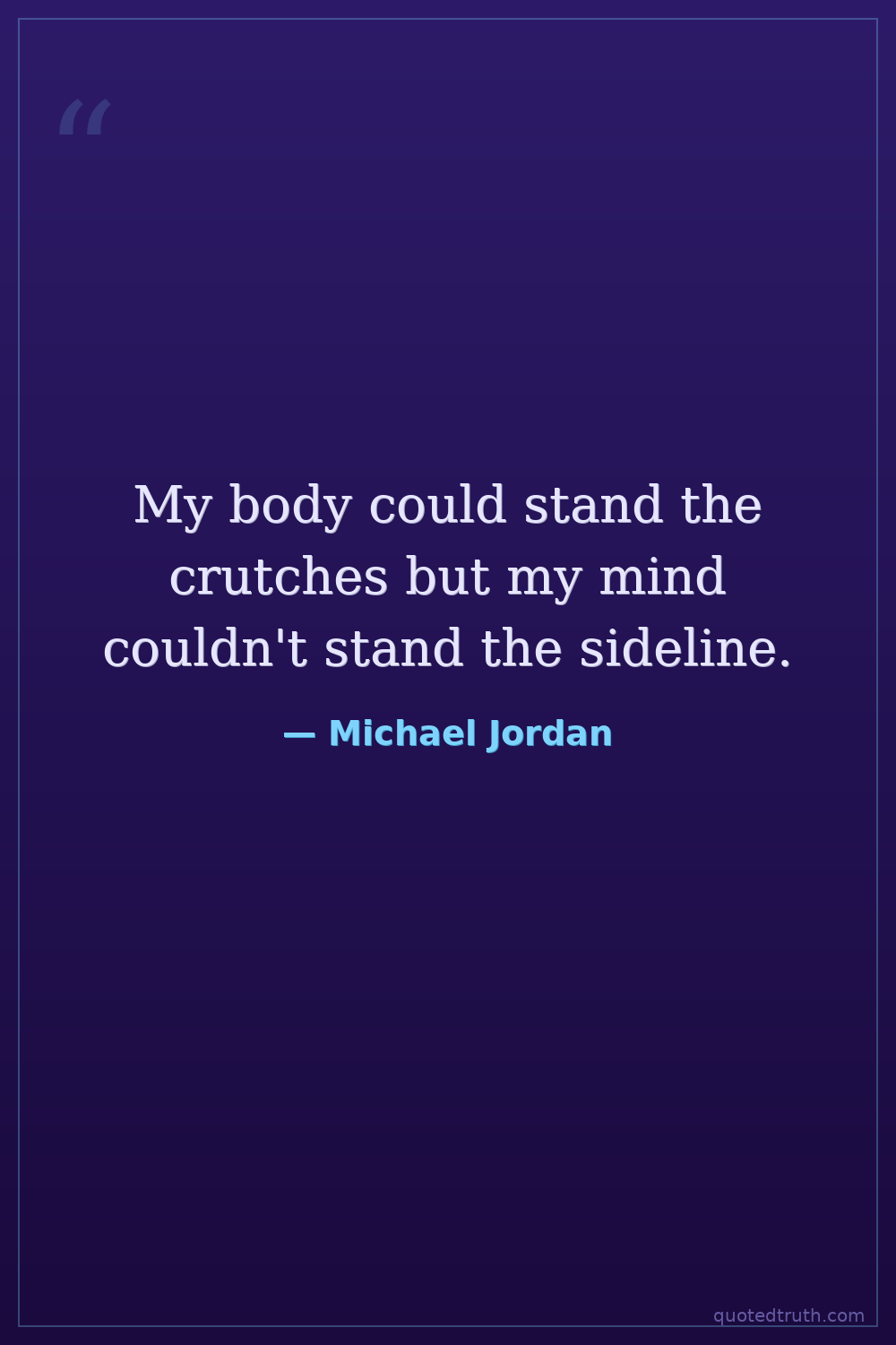 My body could stand the crutches but my mind couldn't stand the sideline.