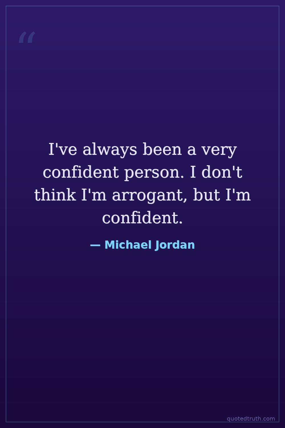 I've always been a very confident person. I don't think I'm arrogant, but I'm confident.