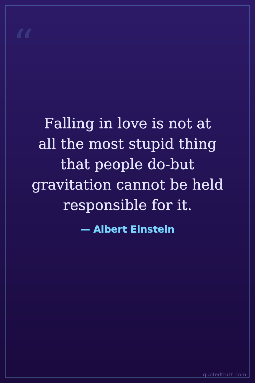 Falling in love is not at all the most stupid thing that people do-but gravitation cannot be held responsible for it.