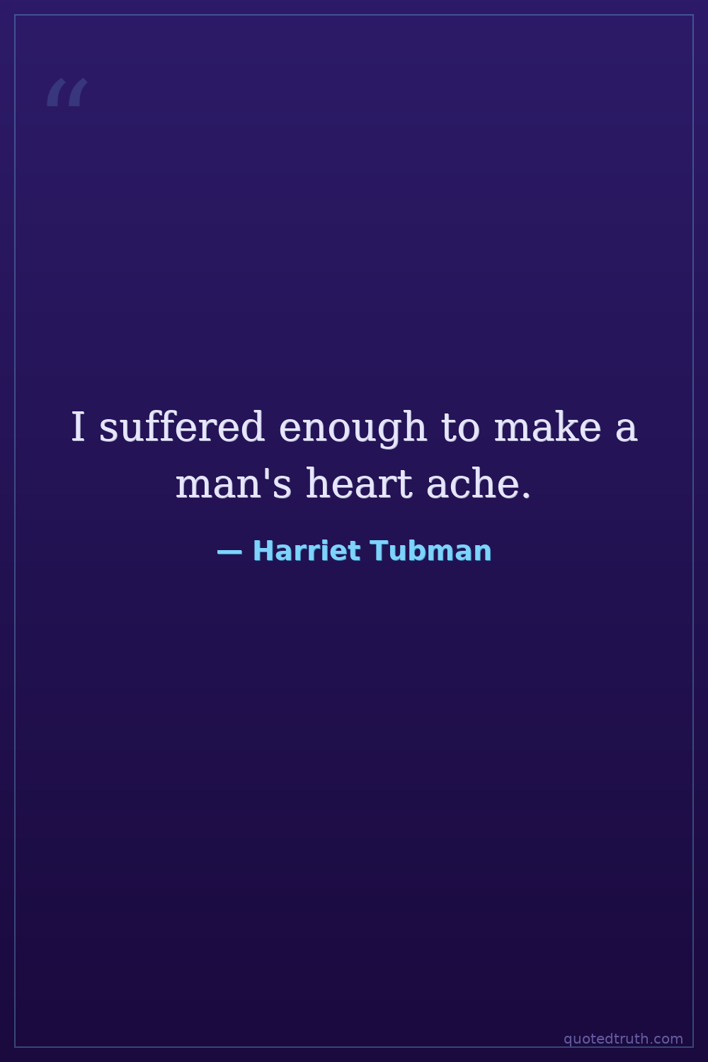 I suffered enough to make a man's heart ache.