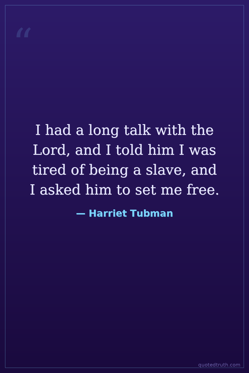I had a long talk with the Lord, and I told him I was tired of being a slave, and I asked him to set me free.