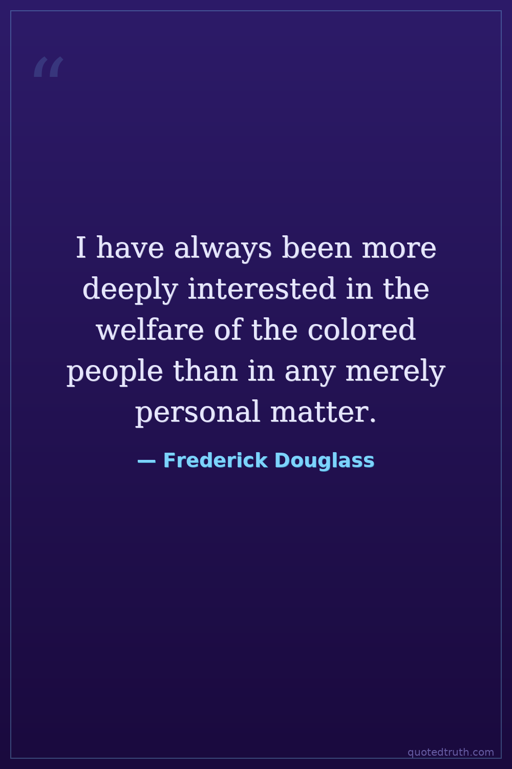 I have always been more deeply interested in the welfare of the colored people than in any merely personal matter.