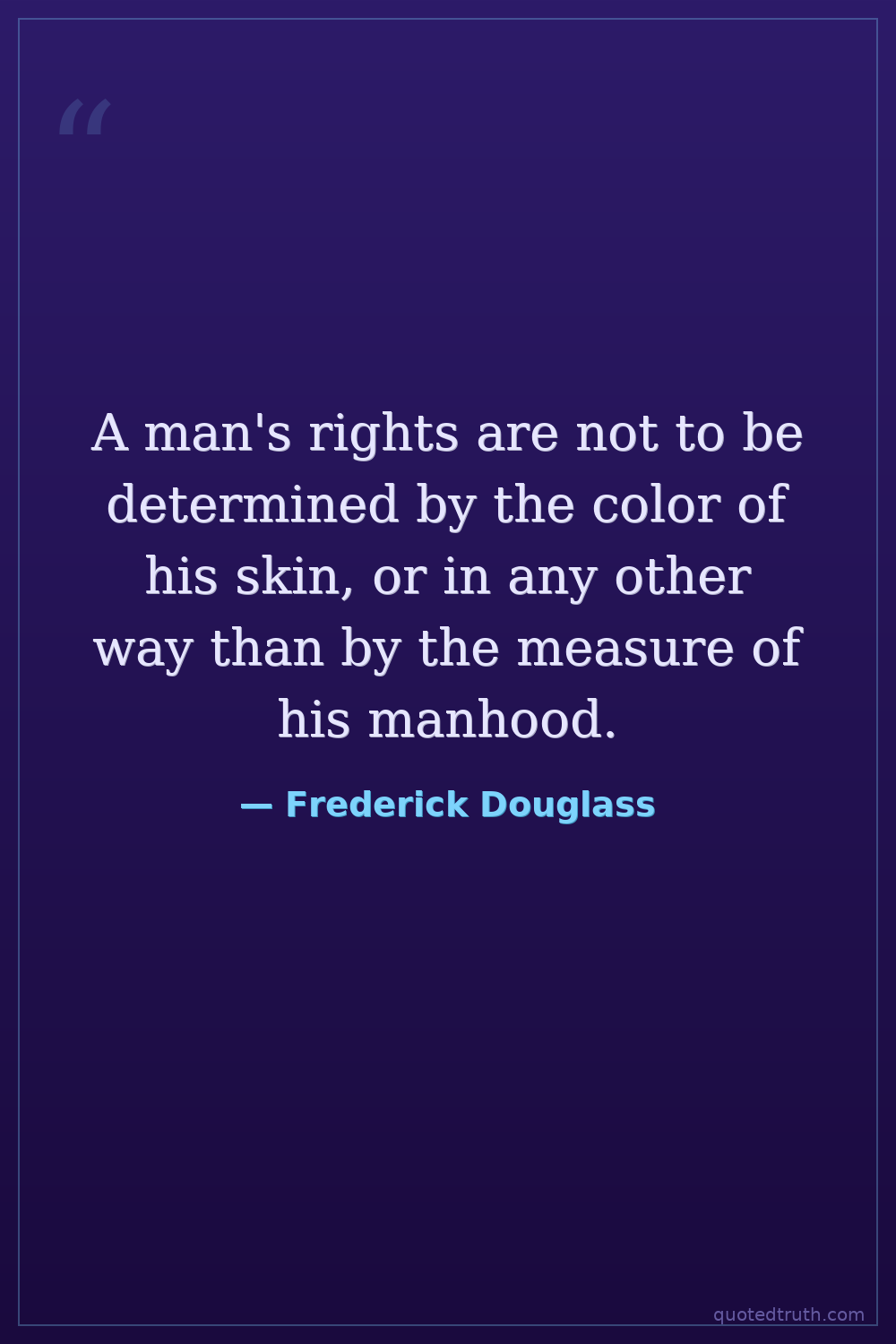 A man's rights are not to be determined by the color of his skin, or in any other way than by the measure of his manhood.