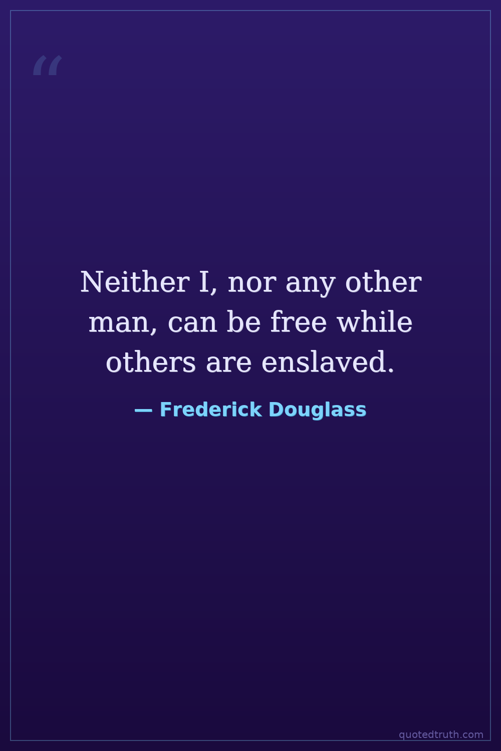 Neither I, nor any other man, can be free while others are enslaved.