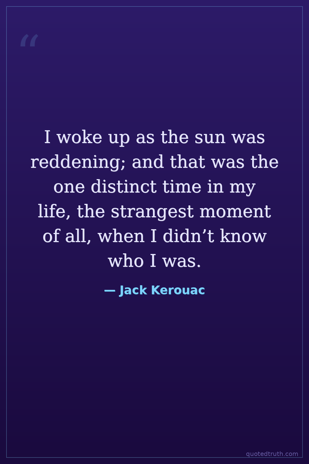 I woke up as the sun was reddening; and that was the one distinct time in my life, the strangest moment of all, when I didn’t know who I was.