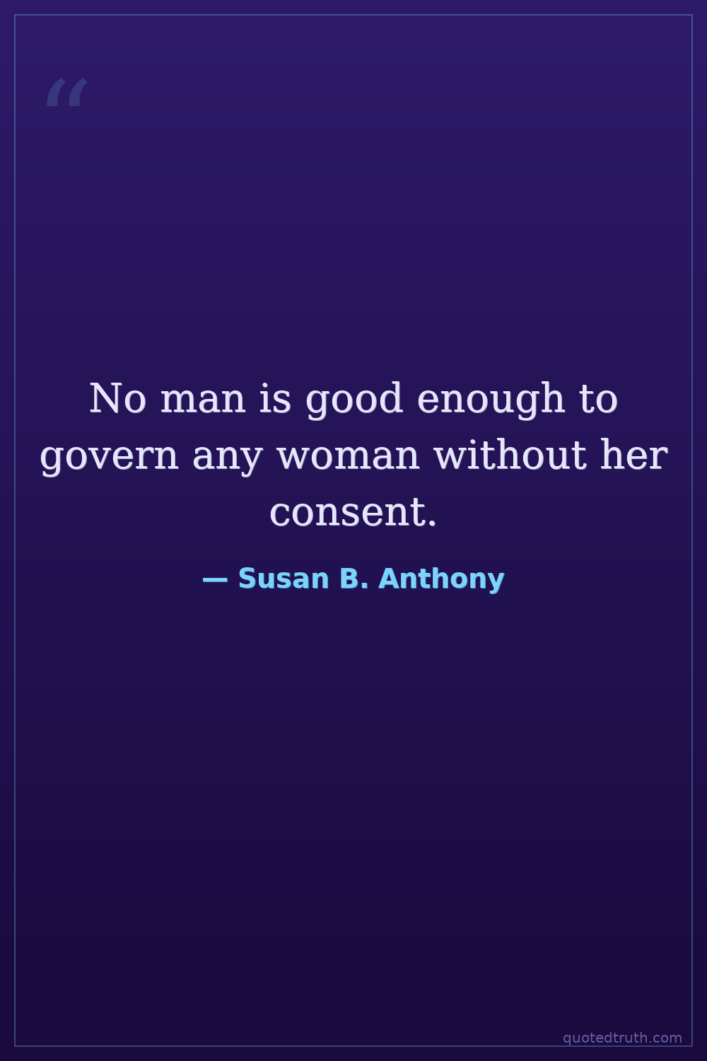 No man is good enough to govern any woman without her consent.