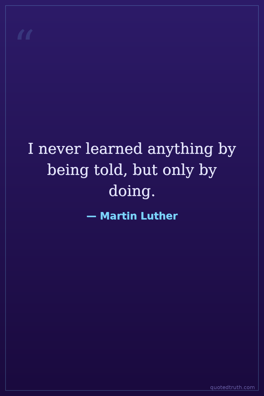 I never learned anything by being told, but only by doing.